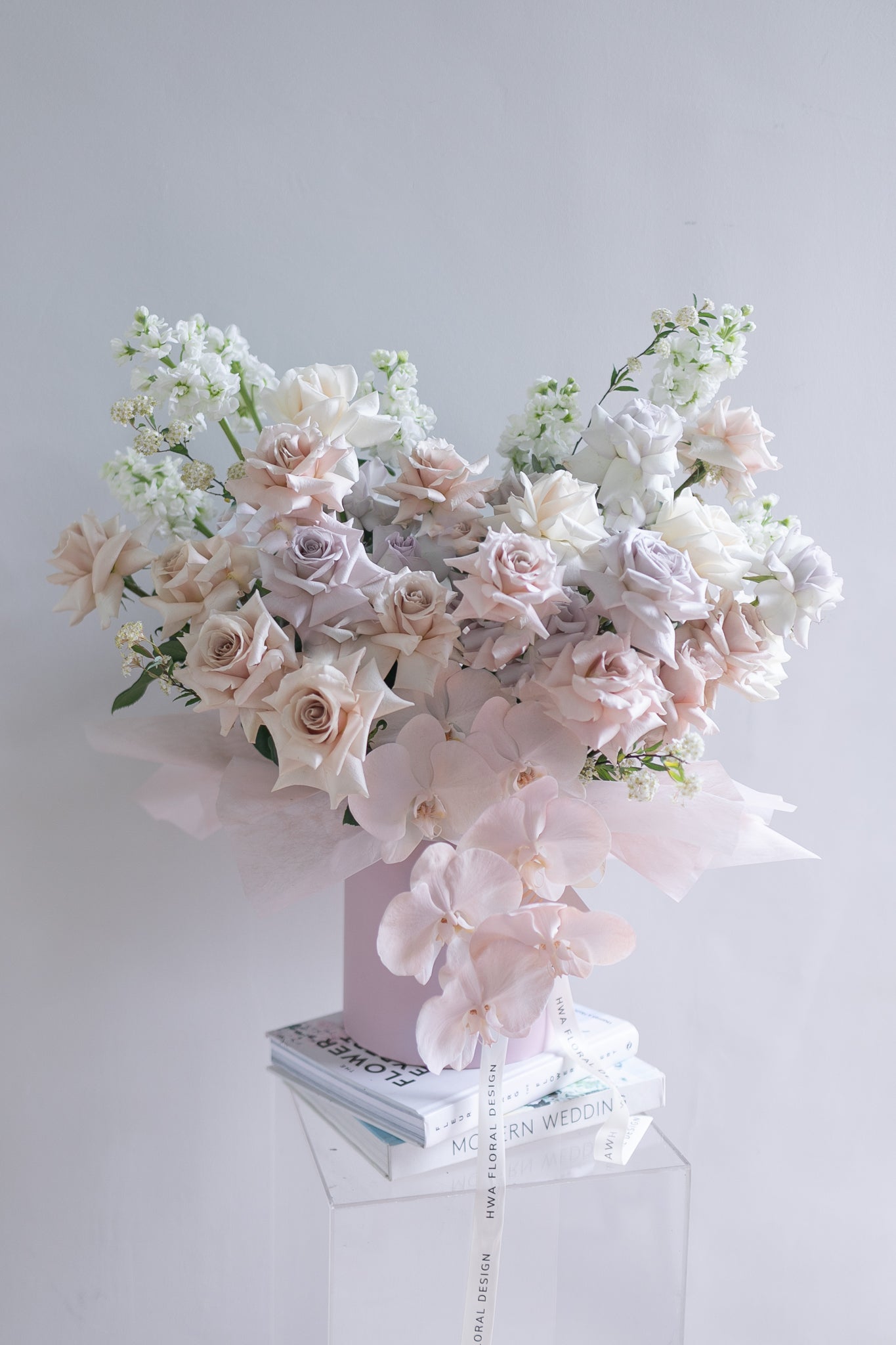 Note that each flower is unique and seasonal, so on rare occasions colors and shapes may vary. Hwā Floral reserves the right to make changes or substitutions. If flowers are not in season, we'll substitute a flower that has a similar color and price-point.