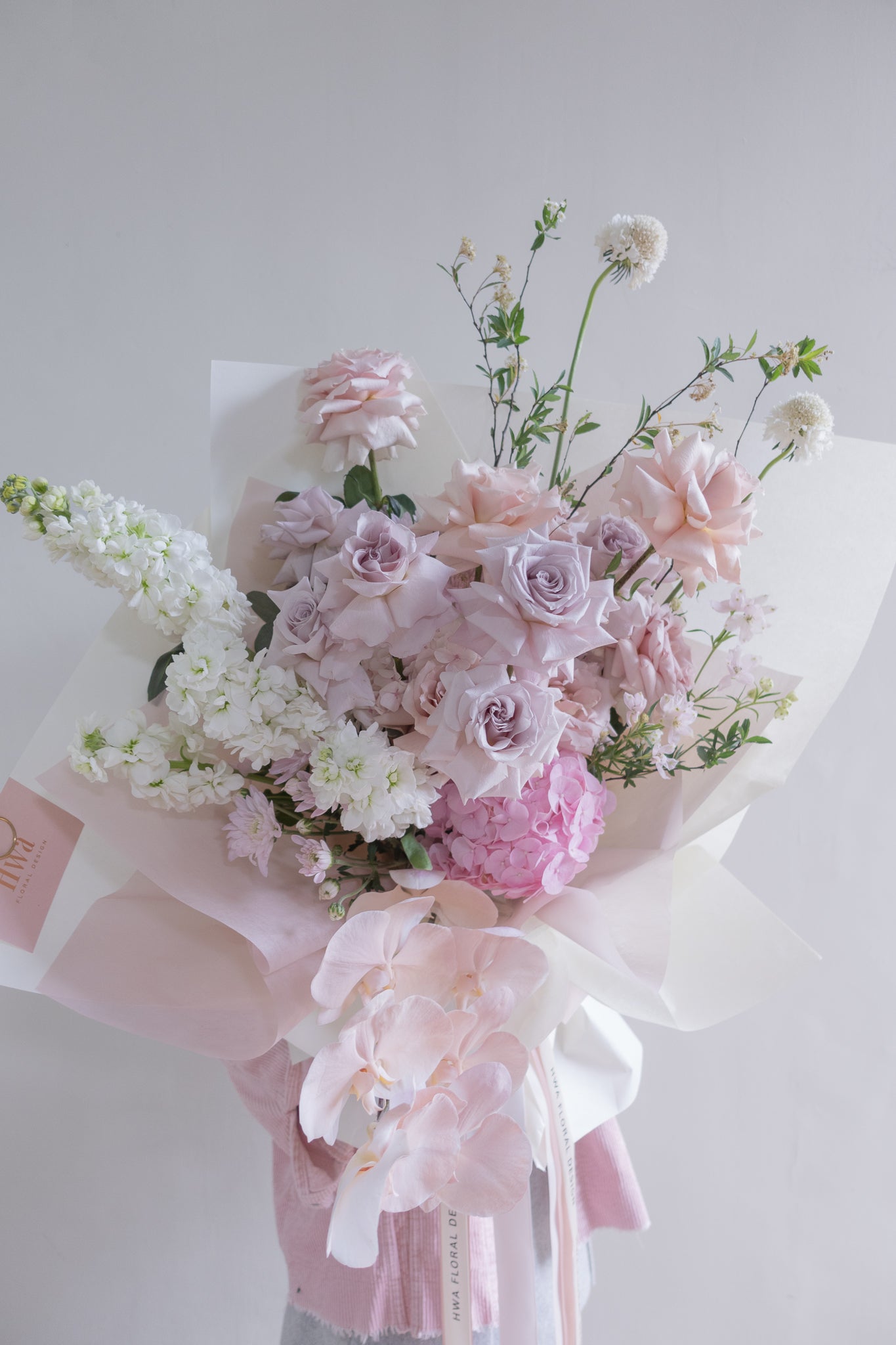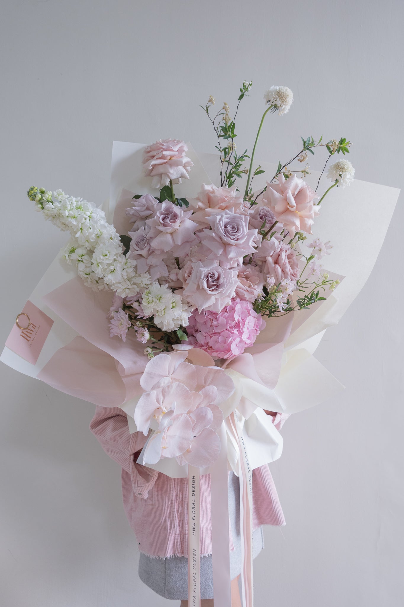 Note that each flower is unique and seasonal, so on rare occasions colors and shapes may vary. Hwā Floral reserves the right to make changes or substitutions. If flowers are not in season, we'll substitute a flower that has a similar color and price-point.