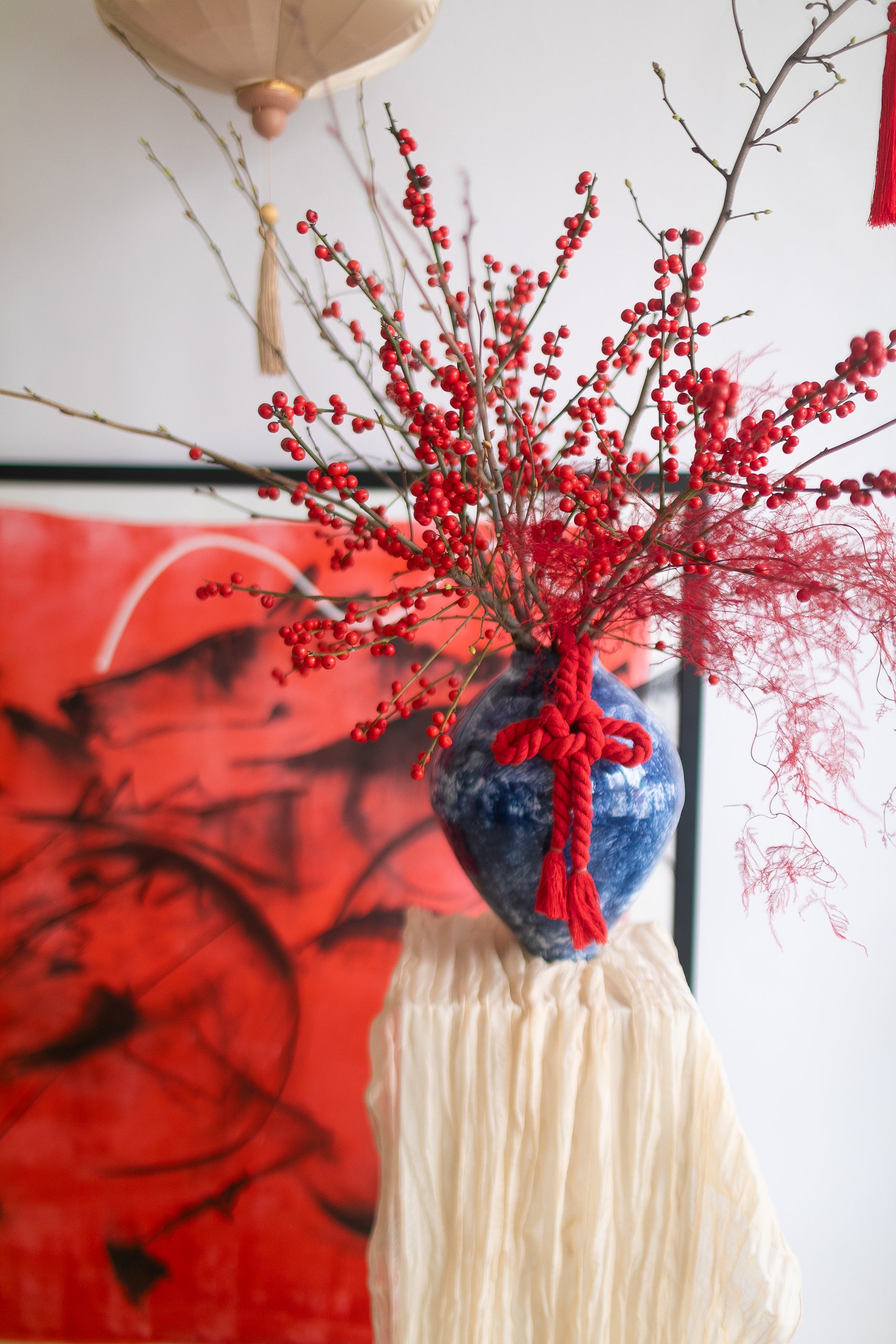 Bound to Bloom is a living expression of continuity and renewal. Composed with fresh Ilex berries and blooming branches, the arrangement embodies growth, resilience, and the promise of prosperity. The red berries, a symbol of luck and protection for the new year, nod to ritual and inheritance, while the composition remains intentional and restrained. Designed for the new year yet rooted in permanence, Bound to Bloom honours the moment where what is carried forward begins to flower.