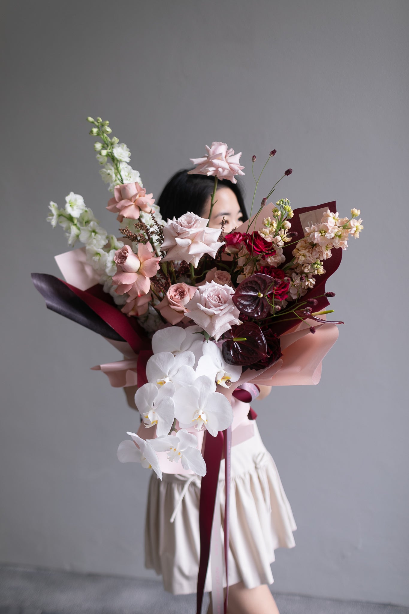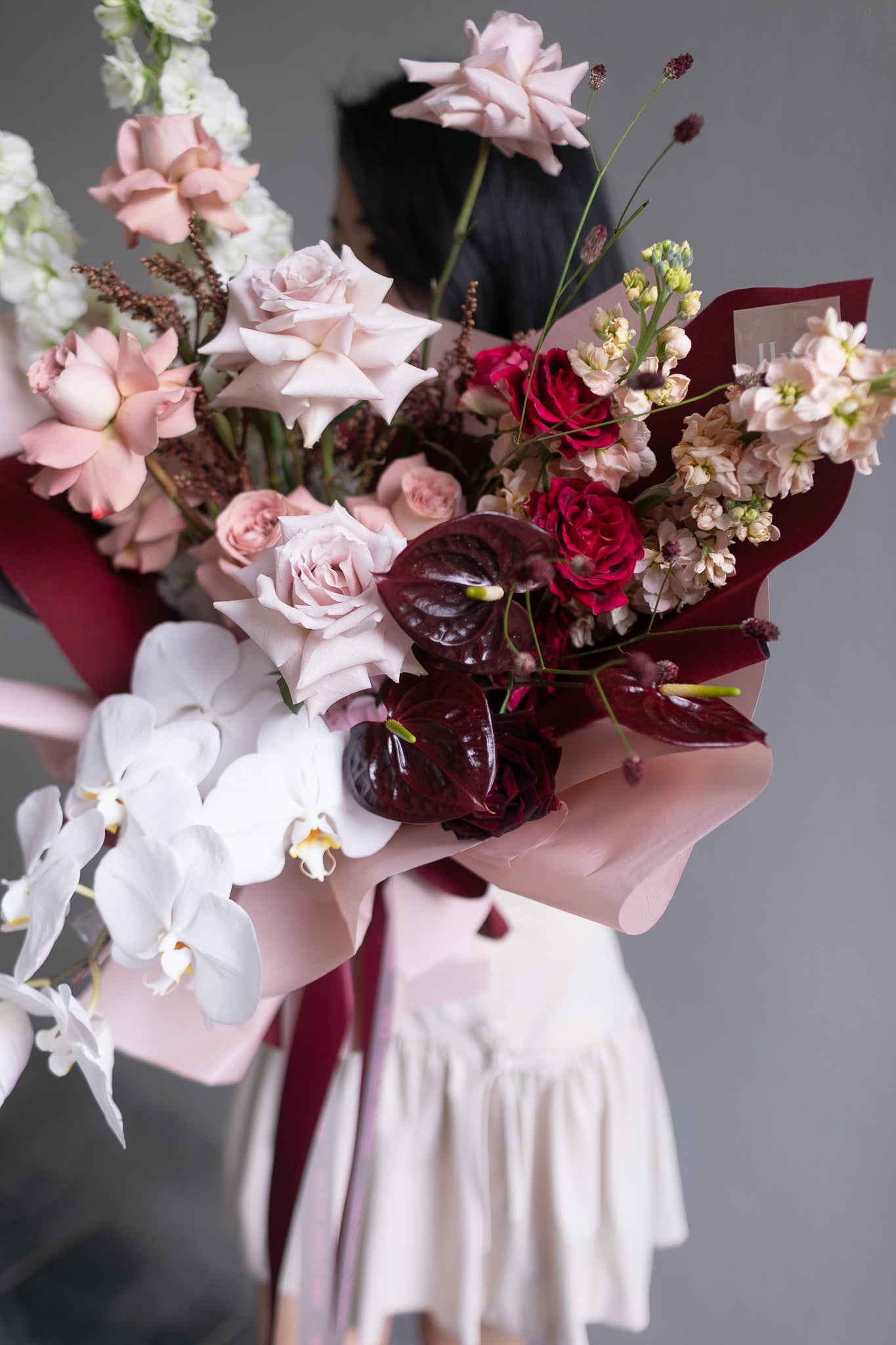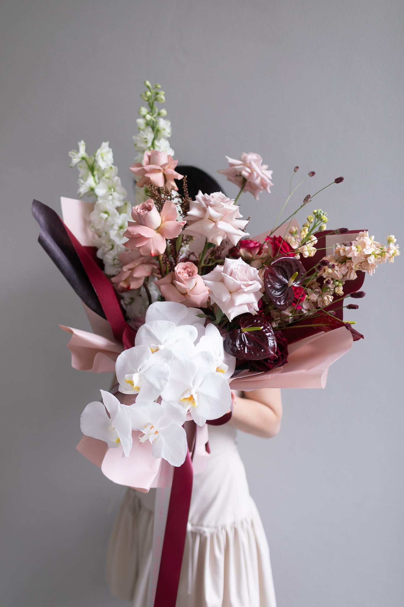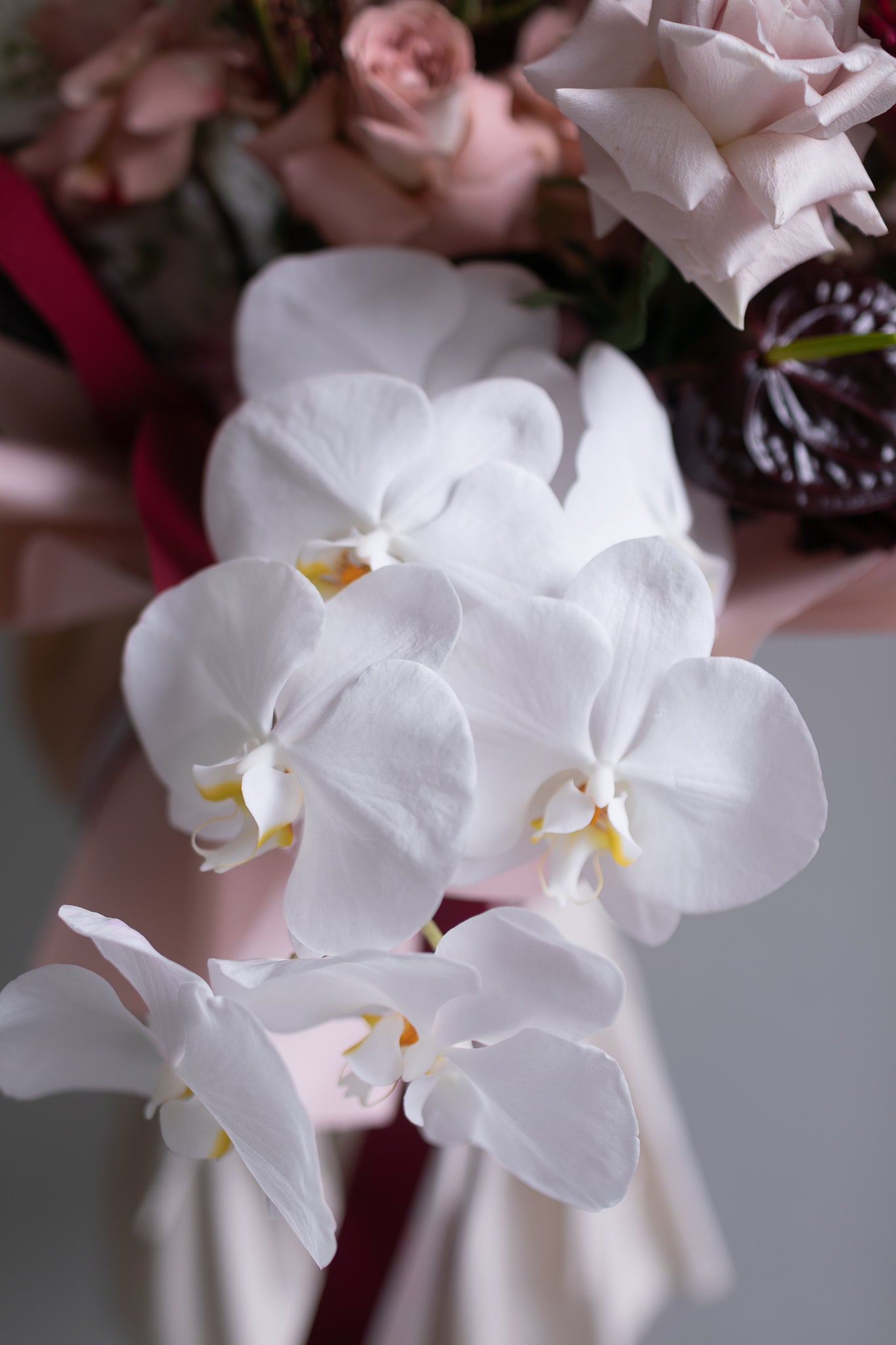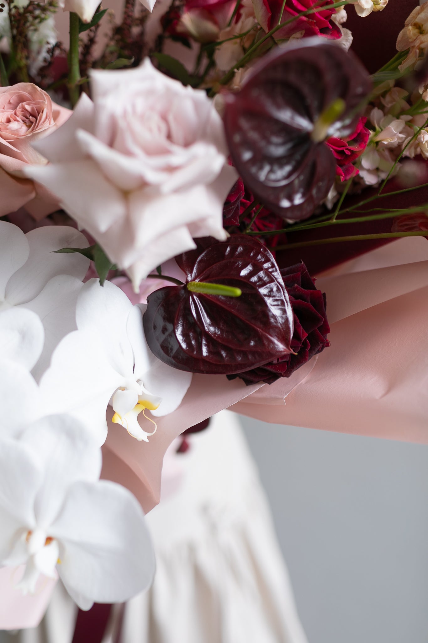 For the Valentine who loves their romance rich, warm, and smooth—just like their favourite coffee. The Espresso bouquet serves up Pantone’s Color of the Year, Mocha Mousse, with a gorgeous mix of dusty pink Cappuccino roses, nude blush Quicksand roses, and playful, heart-shaped anthuriums.