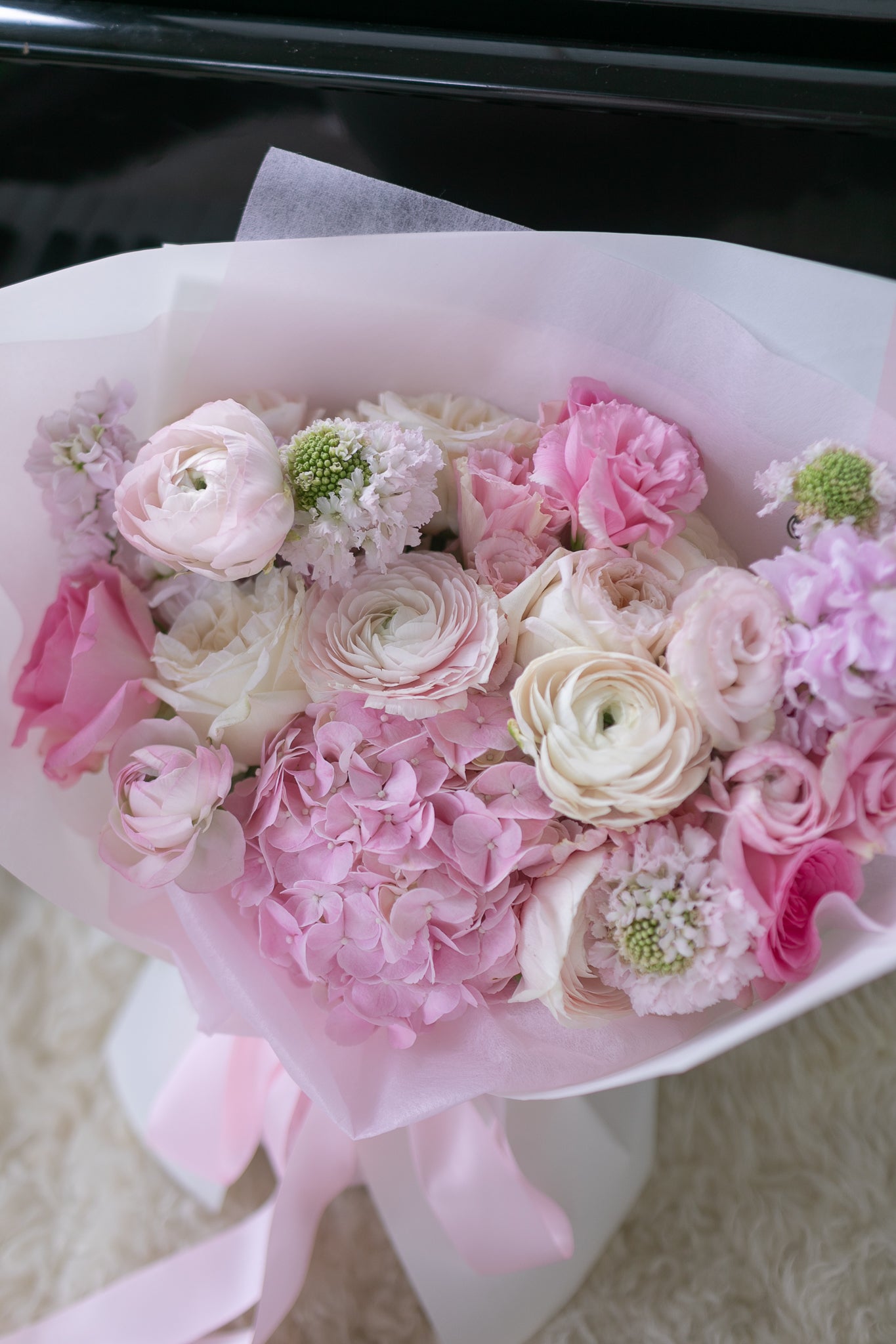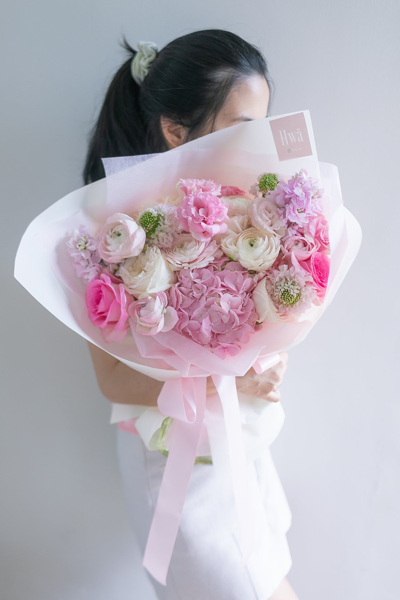 Be swept away by Flirty in Pink, a luxurious bouquet of opulent flowers in shades of pink. From romantic Lychee roses to Eustoma, Ranunculus Clooni, and Hydrangea, each bloom represents love, honor, and beauty. Perfect for expressing heartfelt sentiments to your beloved. (Swoon-worthy!)