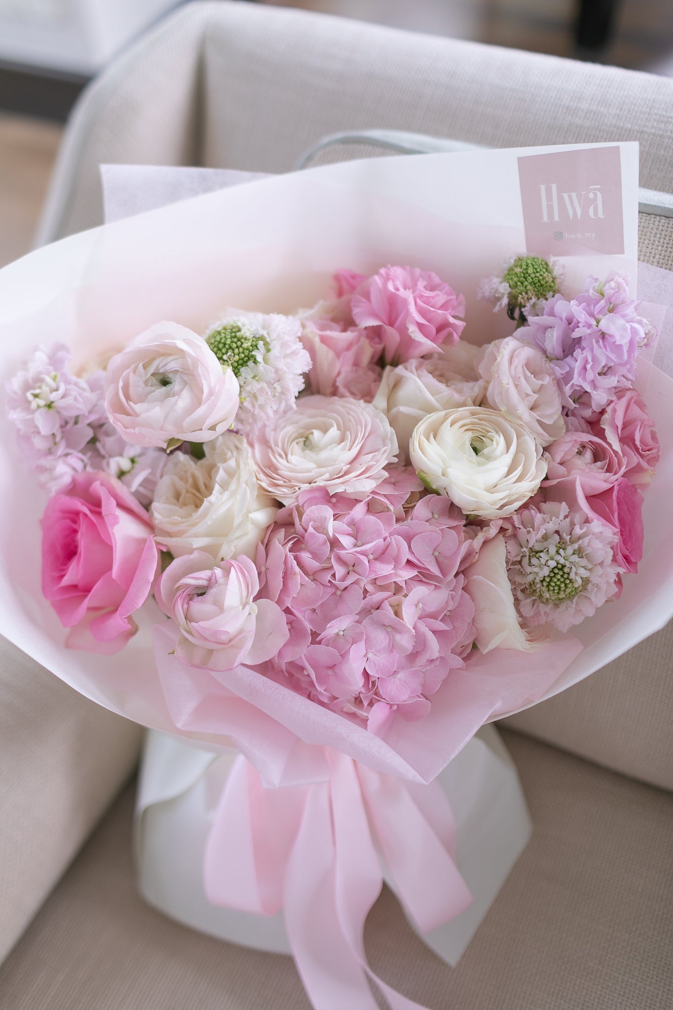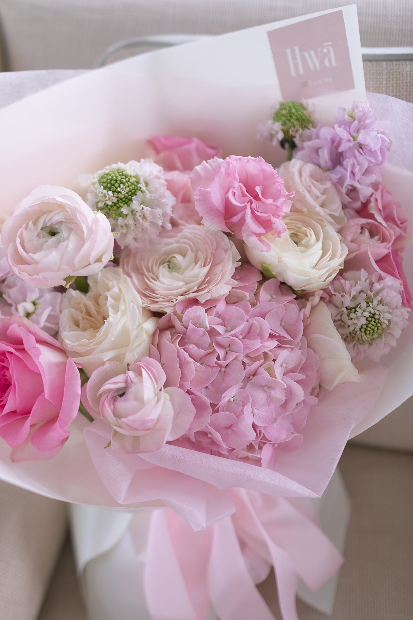 Note that each flower is unique and seasonal, so colors and shapes may vary. Hwā Floral reserves the right to make changes or substitutions. If flowers are not in season, we'll substitute a flower that has a similar color and price-point.