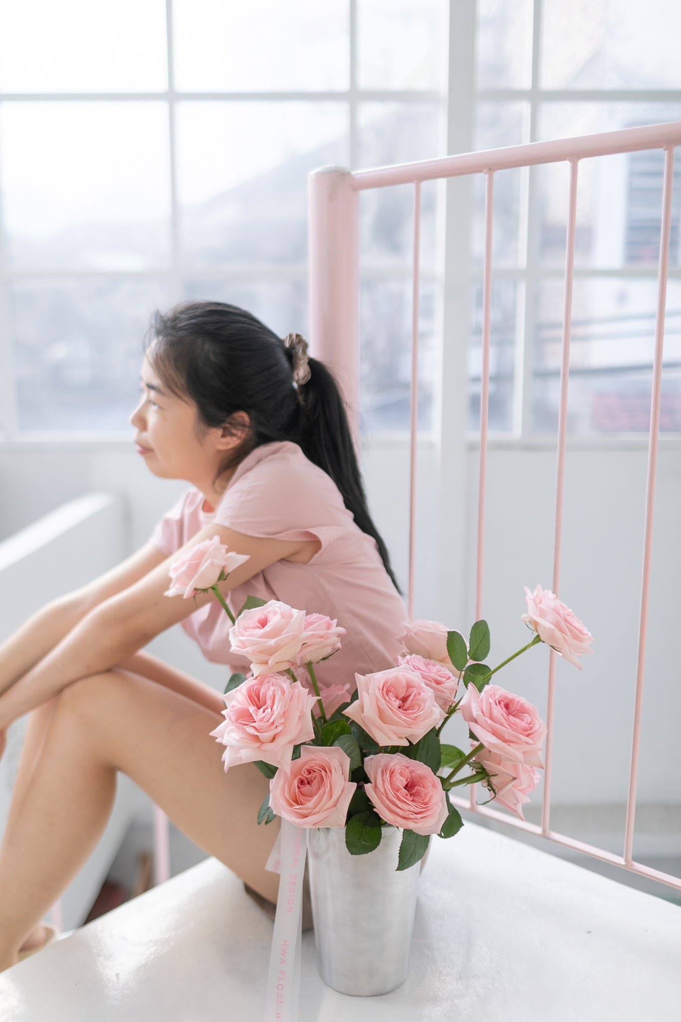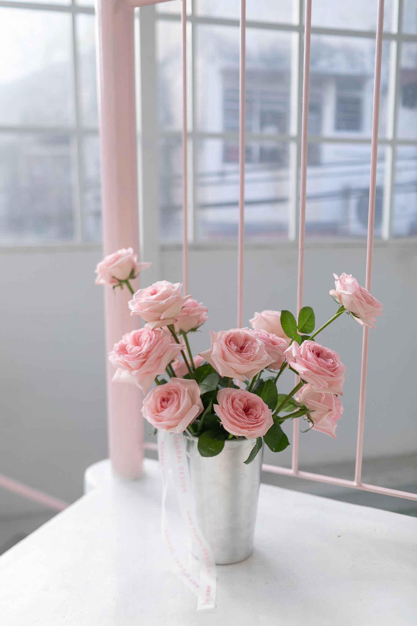 Youthful, aesthetic, and just a little toxic—Girlfriend captures the essence of raw, young love that we all know and secretly crave. The delicate pink roses, infused with intoxicating lychee aroma, perfectly capture the excitement of first dates, inside jokes, and those butterflies you can’t quite shake… even when things get a little messy. Arranged in a sleek, minimalist metal vase, it’s the perfect mix of effortless charm with a side of I-like-you-more-than-I-should.