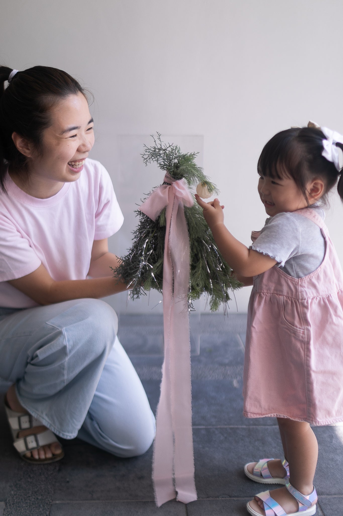 Meet our Guh-Linda Mini Tree — the softest, sweetest, most popular mini evergreen of the season. Styled with a blush bow, a single snowy bauble, and that signature “toss-toss” flip at the top, she brings just the right amount of whimsy and sass to your desk or bedside.