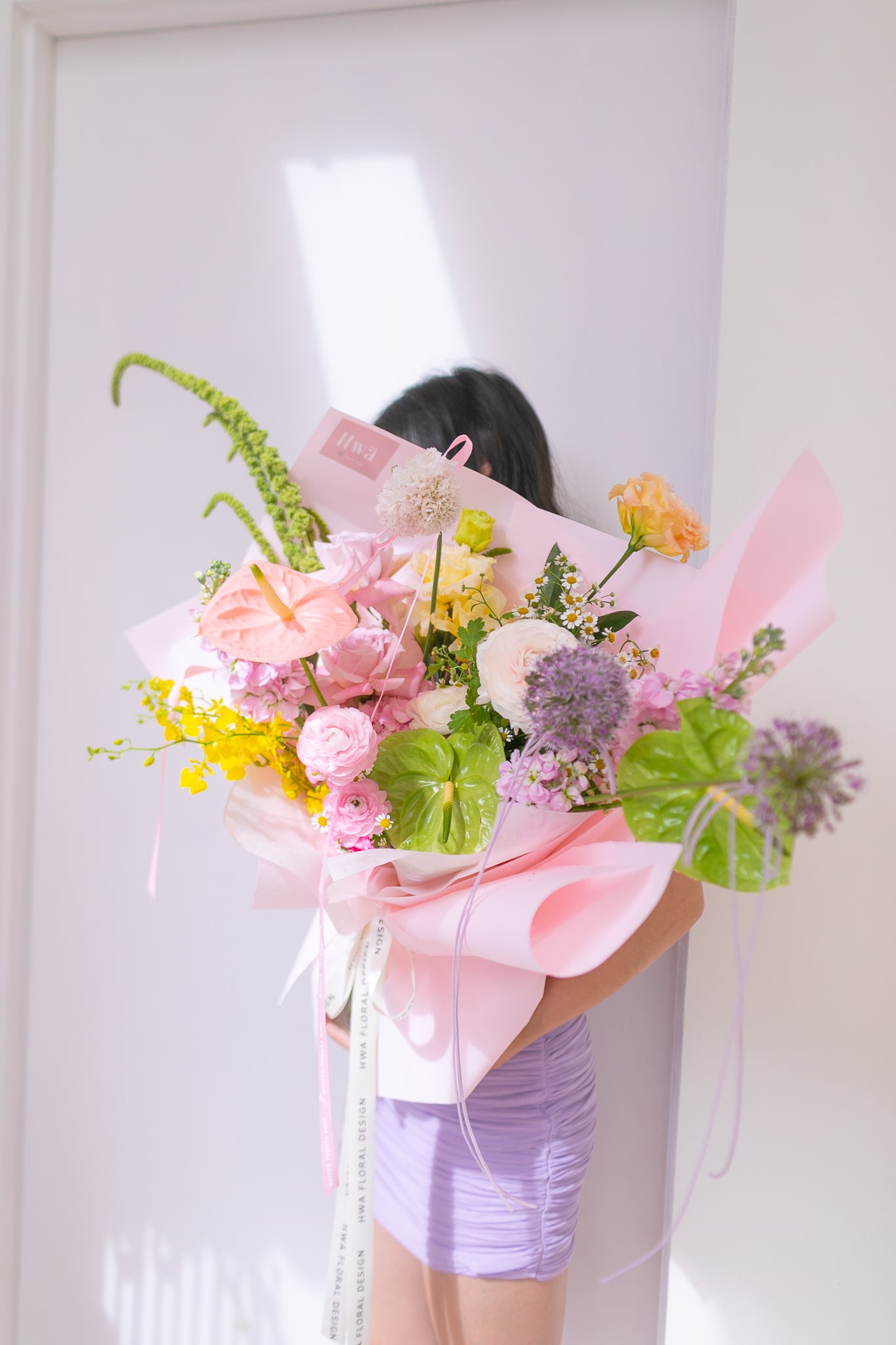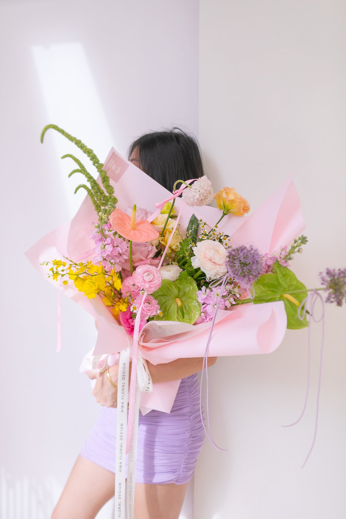 Note that each flower is unique and seasonal, so colors and shapes may vary. Hwā Floral reserves the right to make changes or substitutions. If flowers are not in season, we'll substitute a flower that has a similar color and price-point.