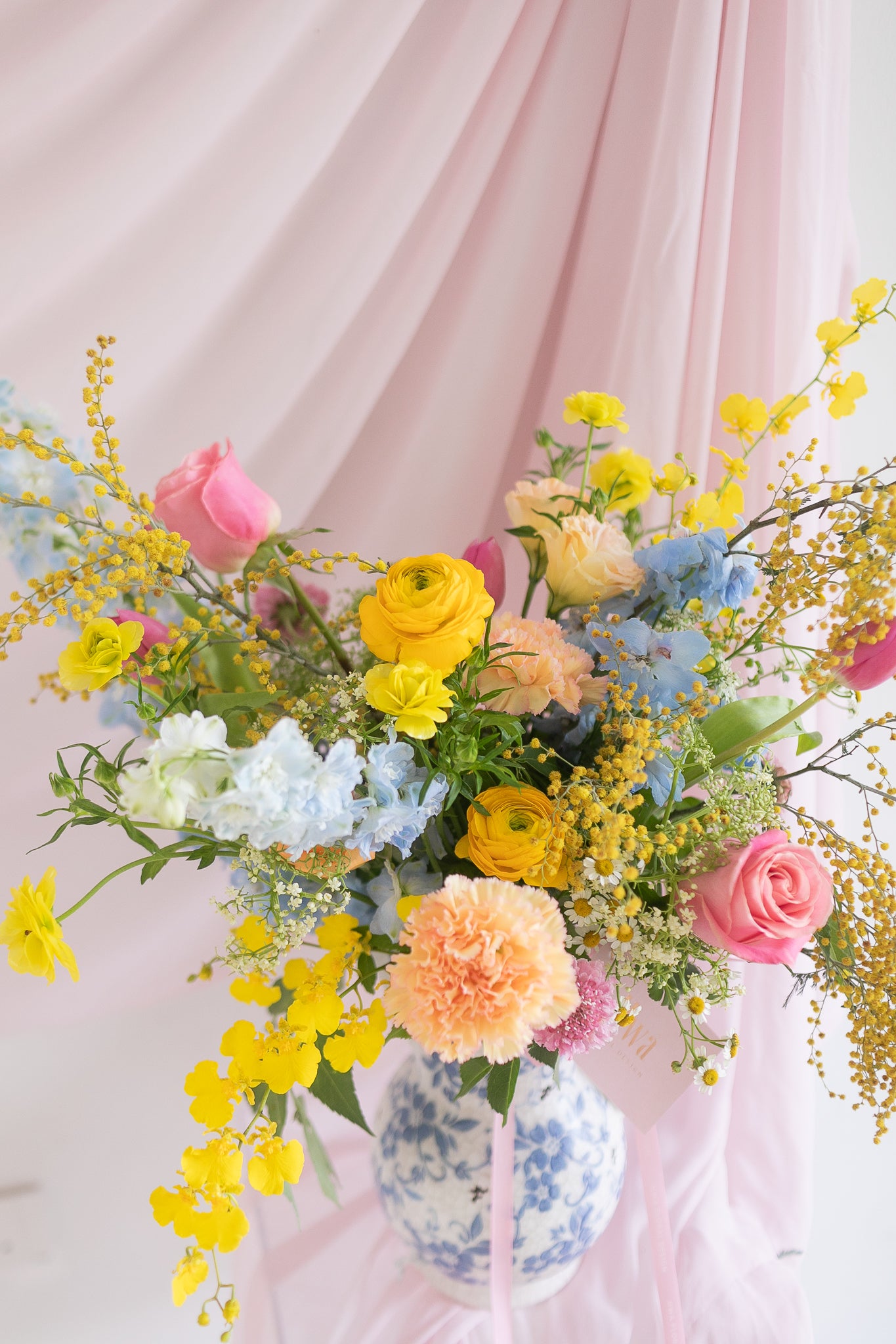 Note that each flower is unique and seasonal, so on rare occasions colors and shapes may vary. Hwā Floral reserves the right to make changes or substitutions. If flowers are not in season, we'll substitute a flower that has a similar color and style.