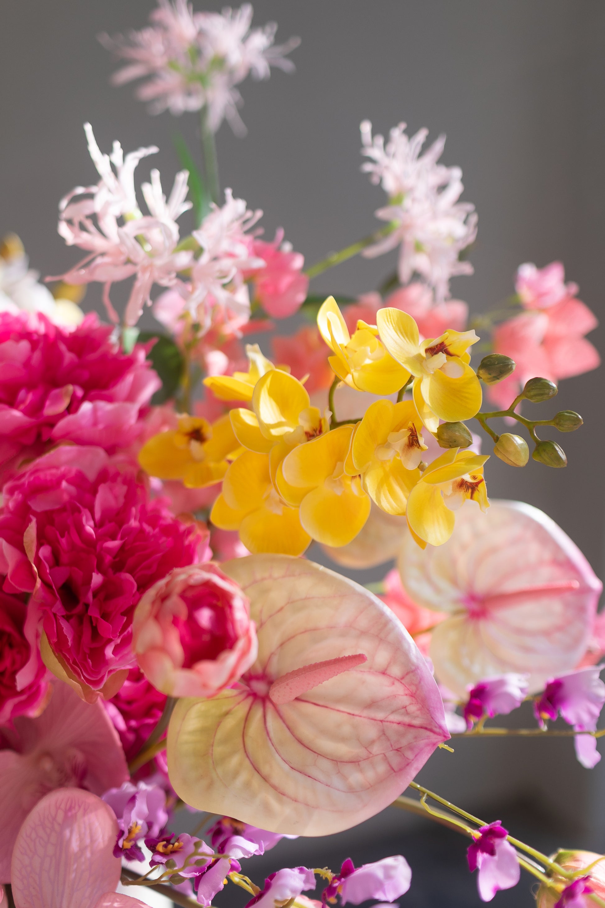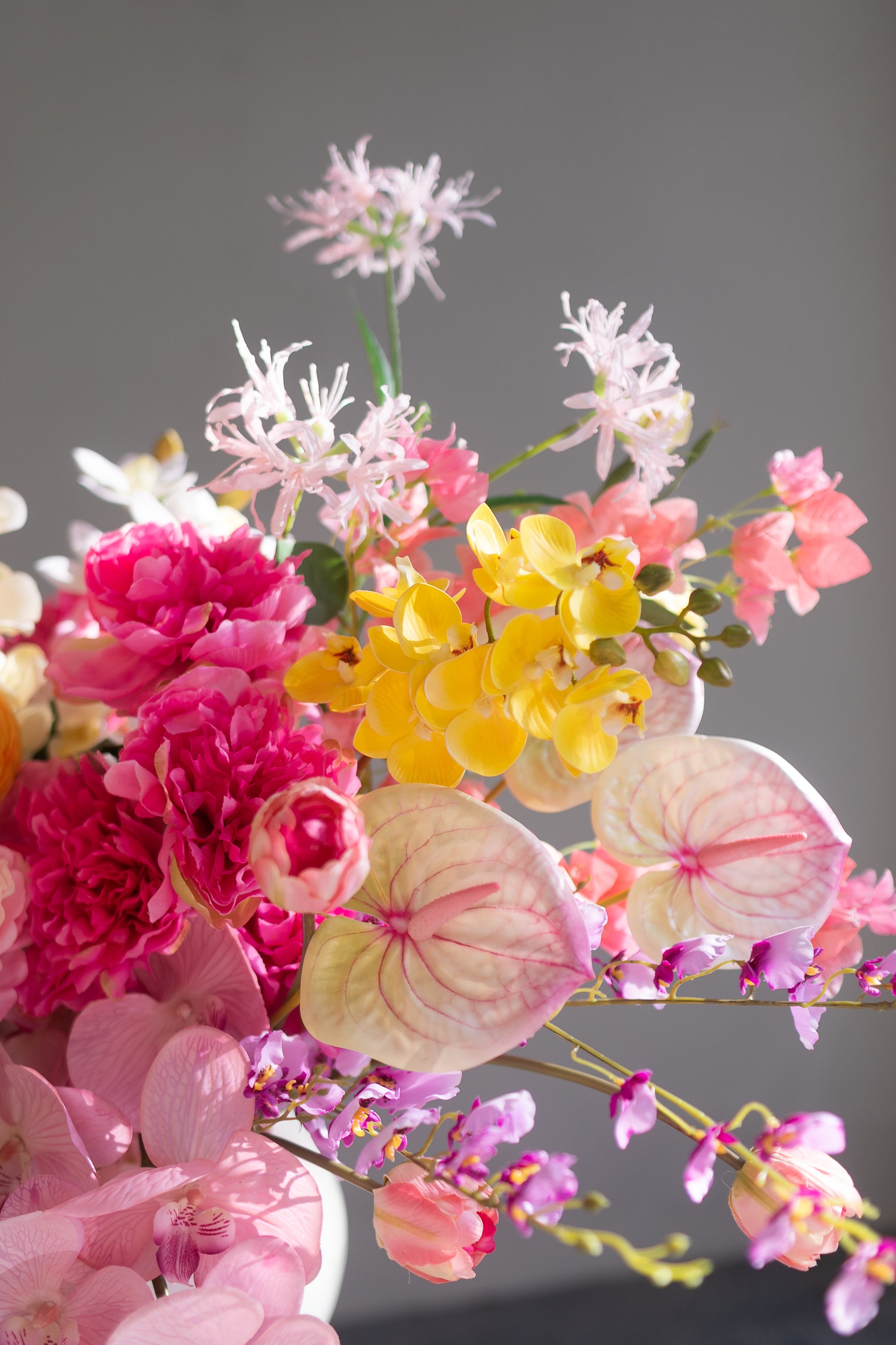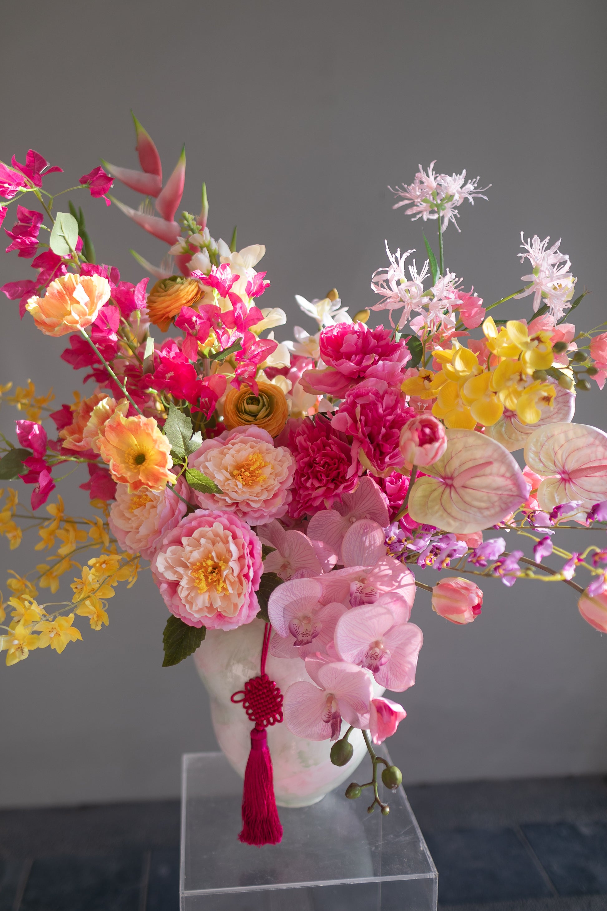 Elevate your Chinese New Year celebrations with this stunning Radiant Ember arrangement. Crafted from premium everlasting silk peonies and orchids in luminous yellow and blush pink hues, this majestic vase piece radiates prosperity and joy. The lifelike florals capture the opulence of the season without fading, making it an ideal statement décor piece for your home or a memorable gift for loved ones. Its show-stopping presence brings warmth and elegance to any space, embodying the festive spirit of renewal and good fortune.
