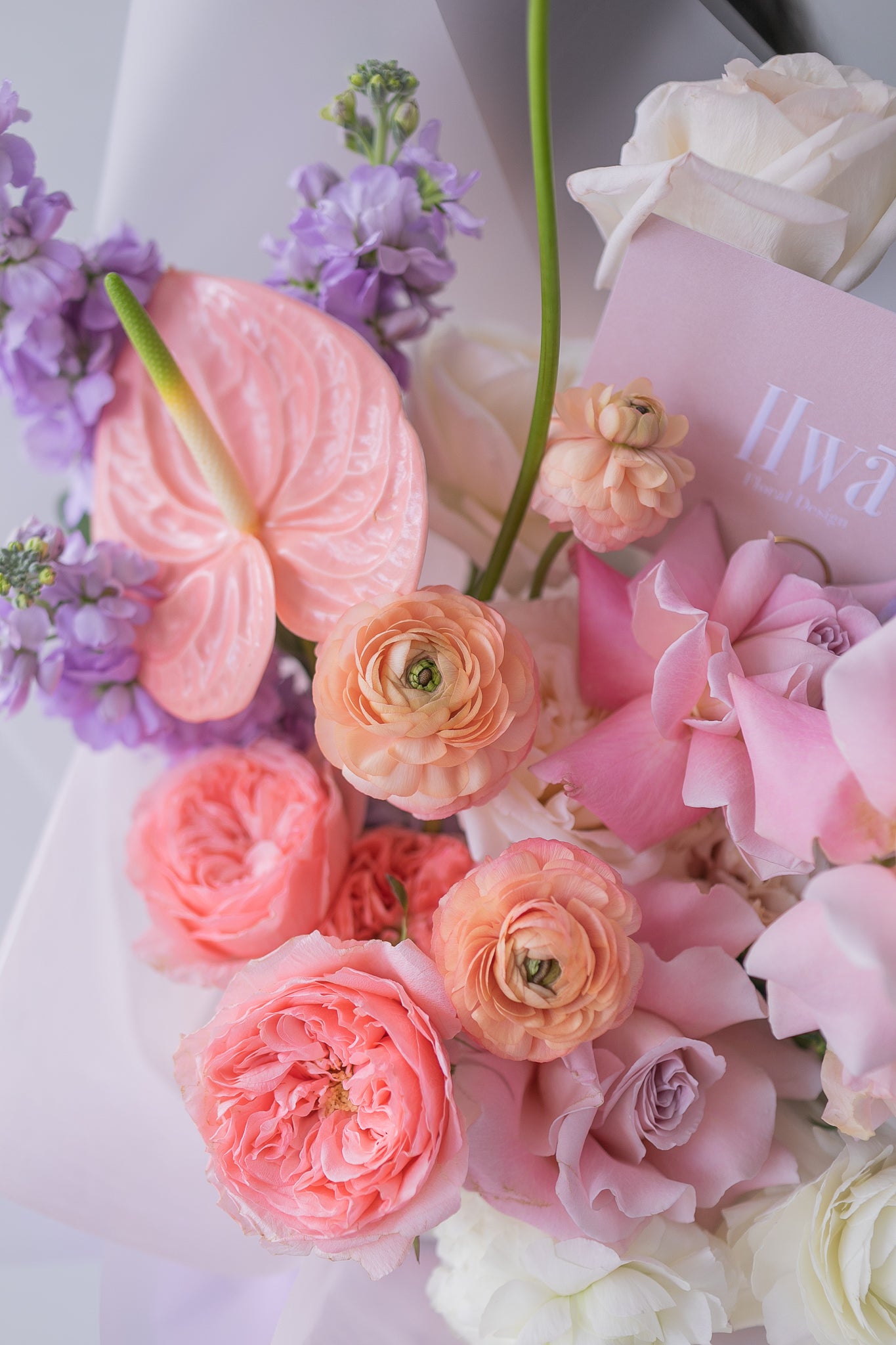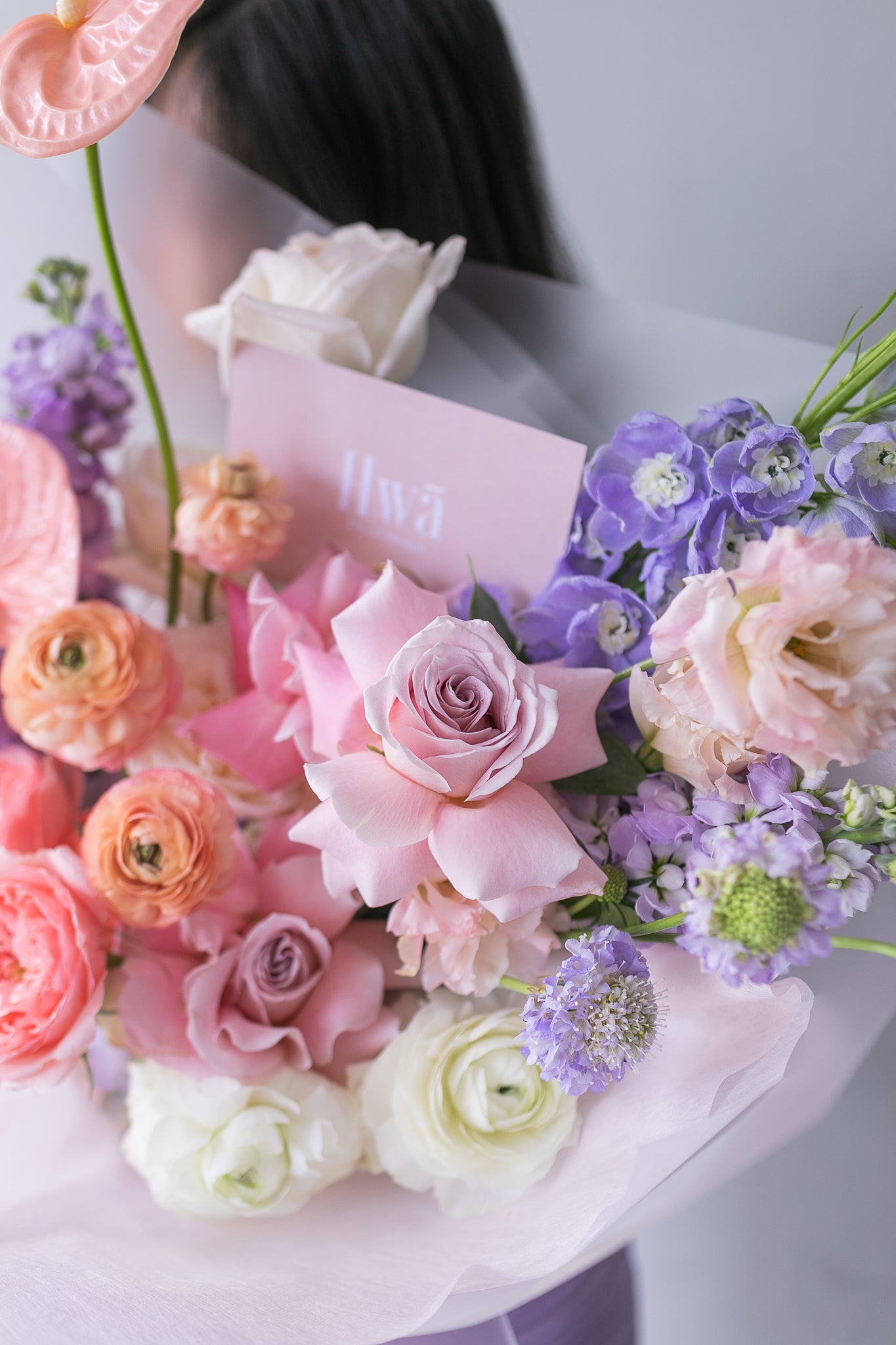 Note that each flower is unique and seasonal, so colors and shapes may vary. Hwā Floral reserves the right to make changes or substitutions. If flowers are not in season, we'll substitute a flower that has a similar color and price-point.