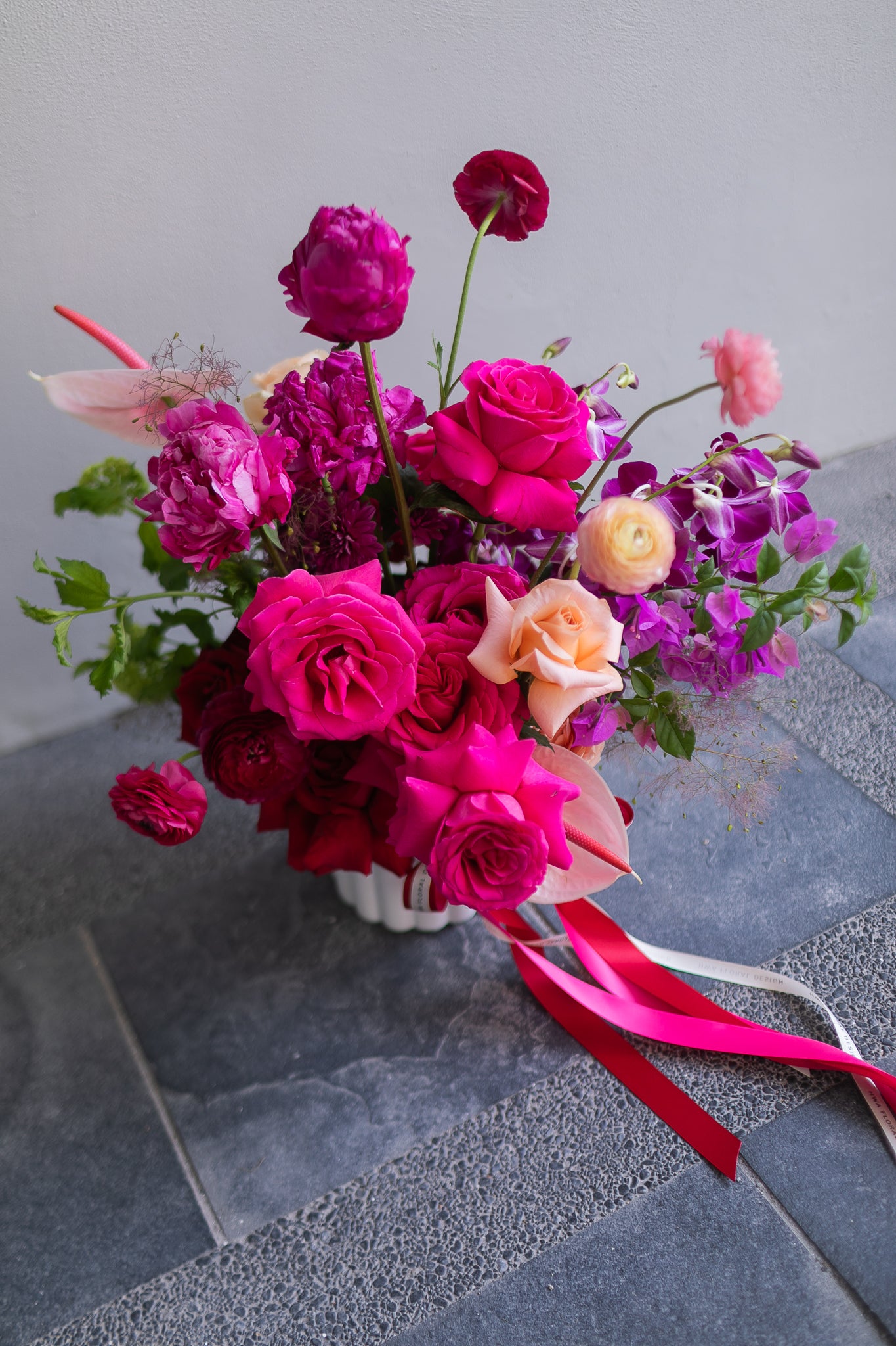 Indulge in the opulence of The Regent - let its vibrant hues of pinks and reds evoke a sense of luxury and decadence. This elegant arrangement is the ultimate expression of love and admiration for the queens in your life.