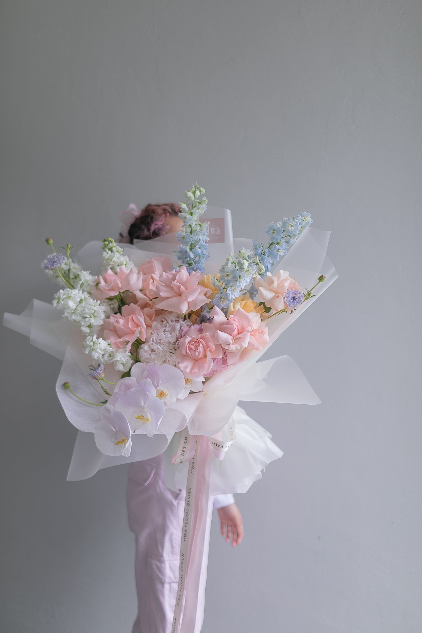 Note that each flower is unique and seasonal, so on rare occasions colors and shapes may vary. Hwā Floral reserves the right to make changes or substitutions. If flowers are not in season, we'll substitute a flower that has a similar color and price-point.